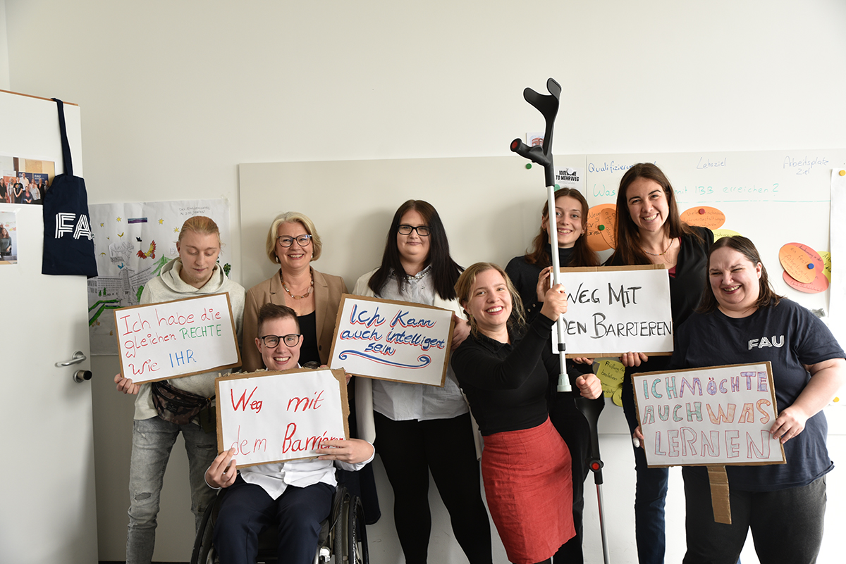 Die FAU geht mit dem Projekt Inklusive Bildung Bayern innovative Wege für inklusive Hochschullehre. Das bayernweit einzigartige Kooperationsprojekt Inklusive Bildung Bayern (IBB) von Access – Inklusion im Arbeitsleben und der FAU qualifiziert Menschen mit Einschränkungen zu sogenannten Bildungsfachkräften, die Inklusion an bayerischen Hochschulen lehren und dadurch (er)lebbar machen. Die Fachkräfte bringen in Seminaren, Lehre und Veranstaltungen ihre Erfahrungen mit Inklusion ein – und werden damit aktive Mitgestalter*innen der Hochschulwelt.